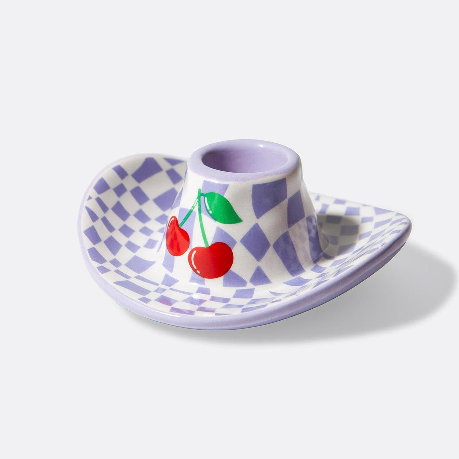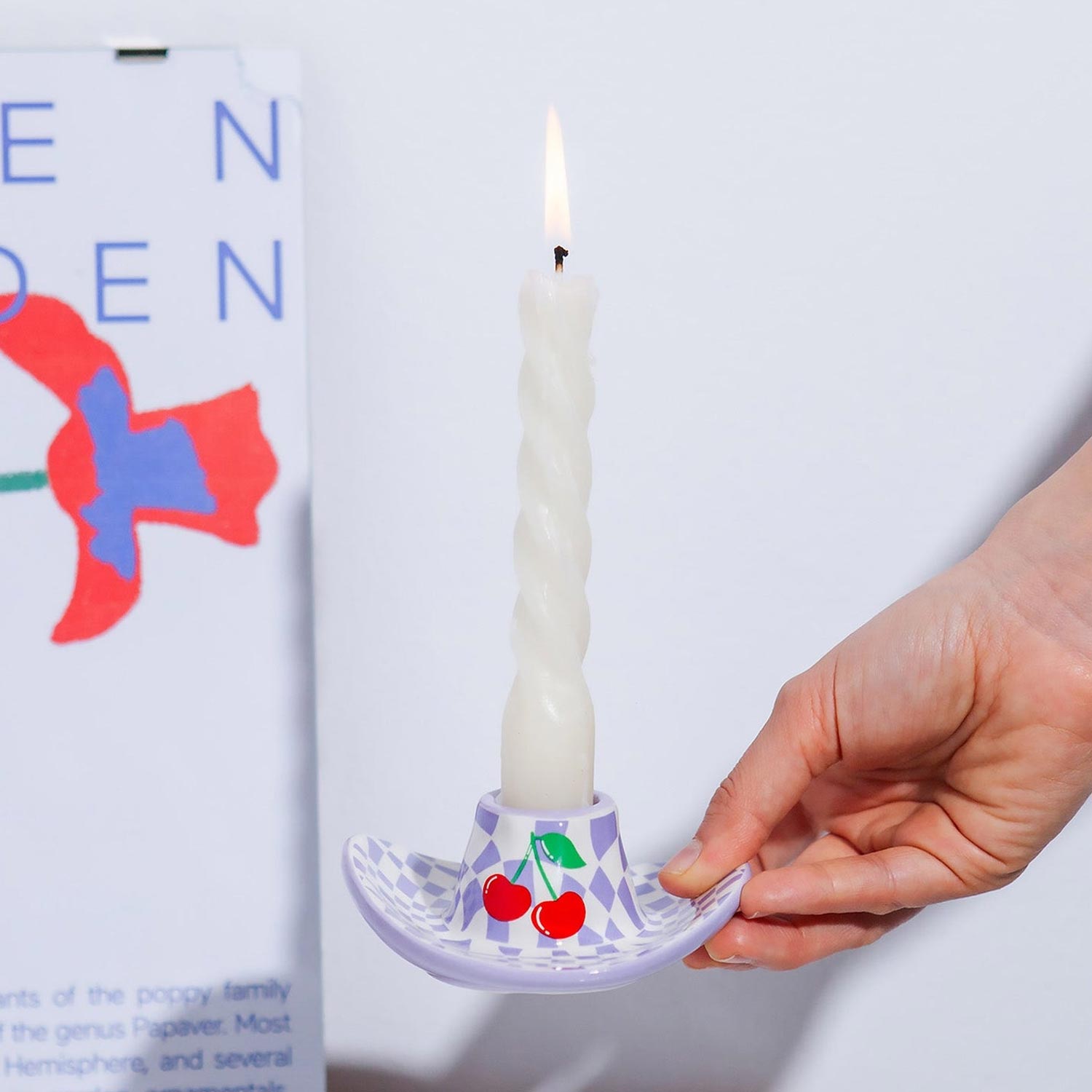Ceramic candle holder shaped as a cowboy hat, brings a dash of Western chic to any space with its spirited and whimsical design. Yee-Haw!