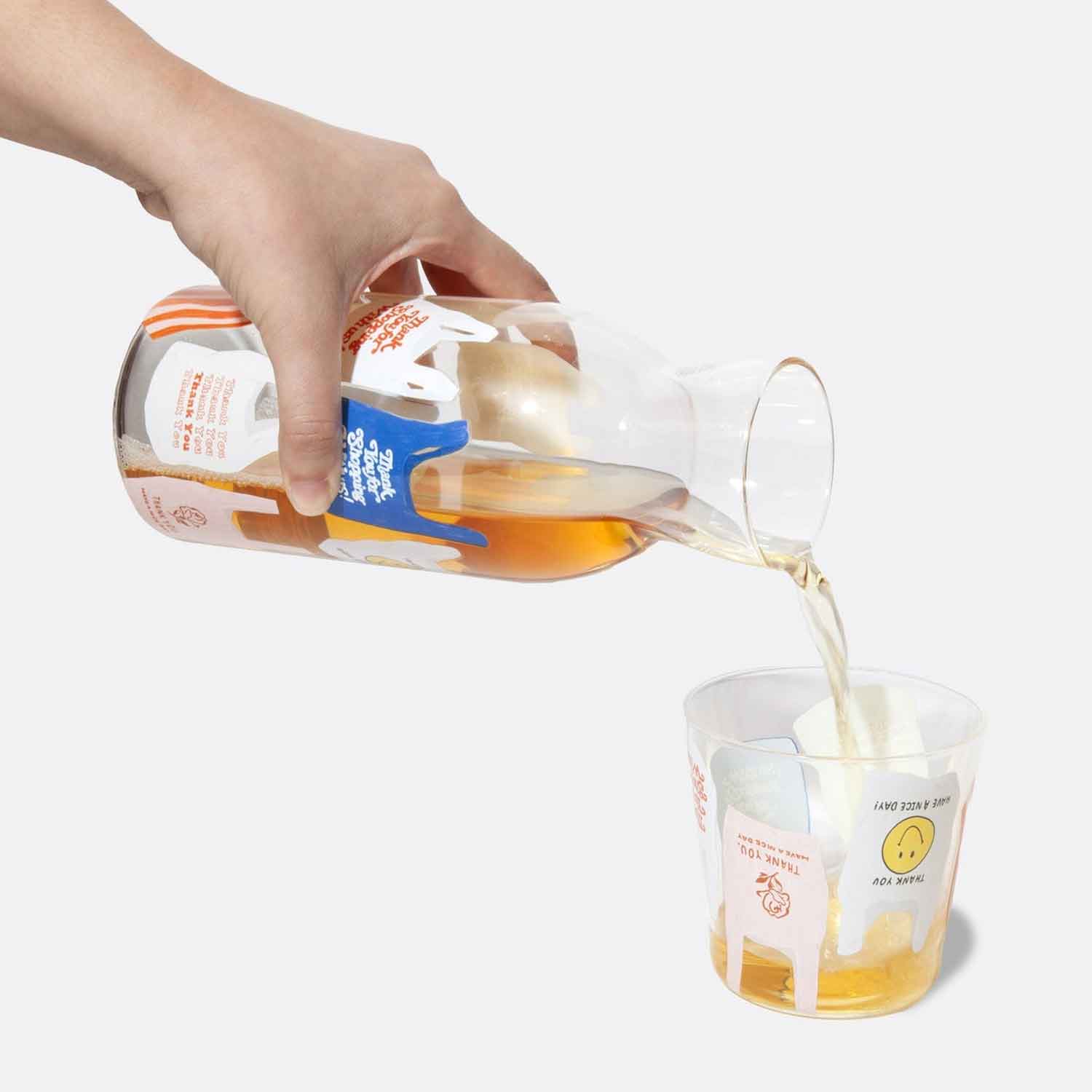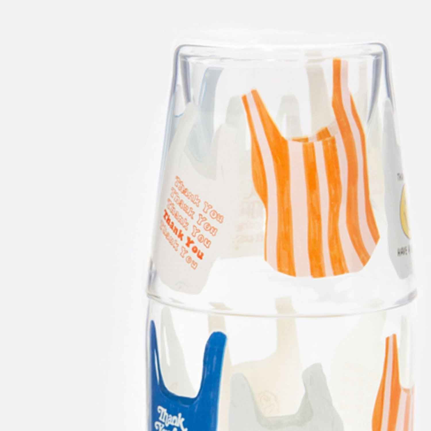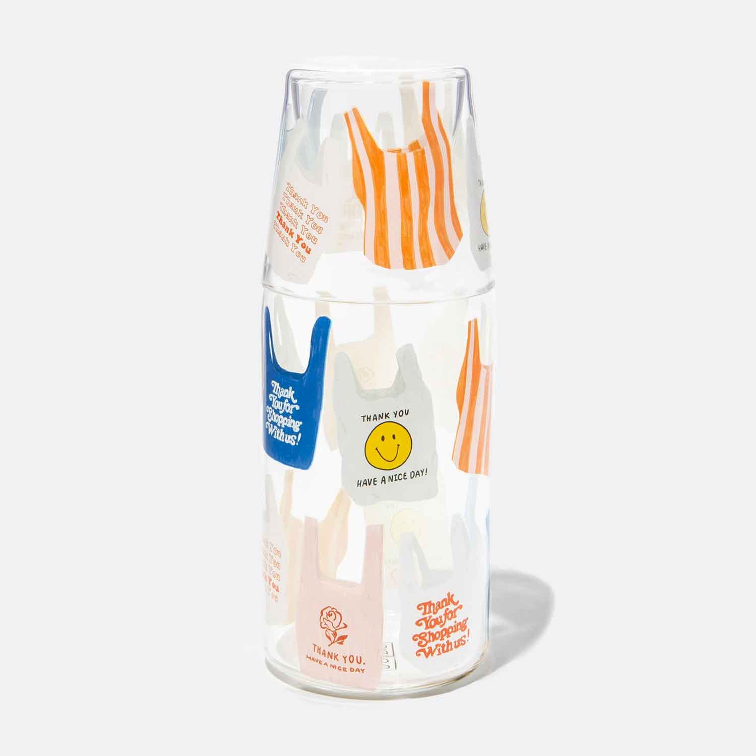 Jar and glass set with shopping bag illustrations, transporting you to the cherished memories of neighborhood corner shops and beloved treats from yesteryears.