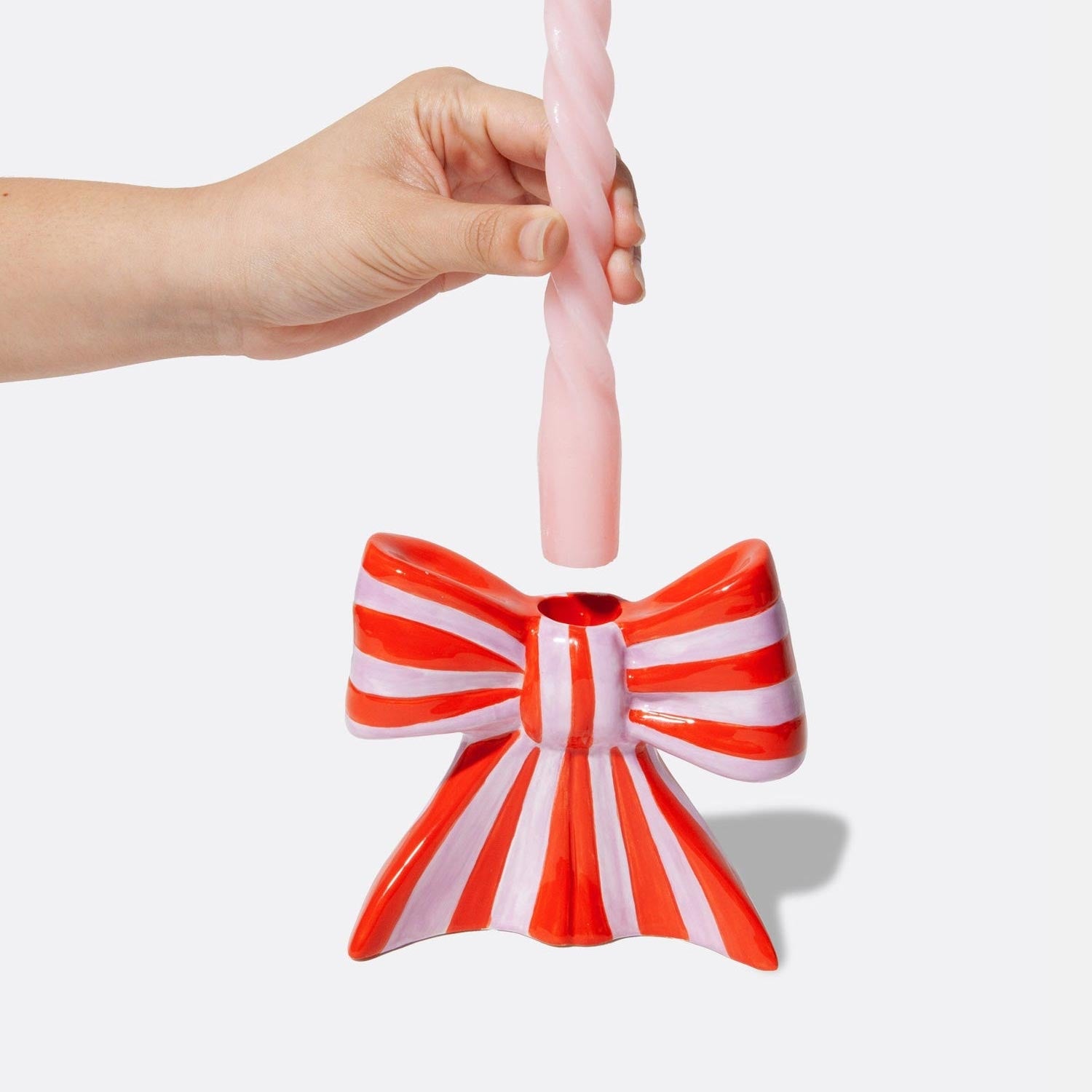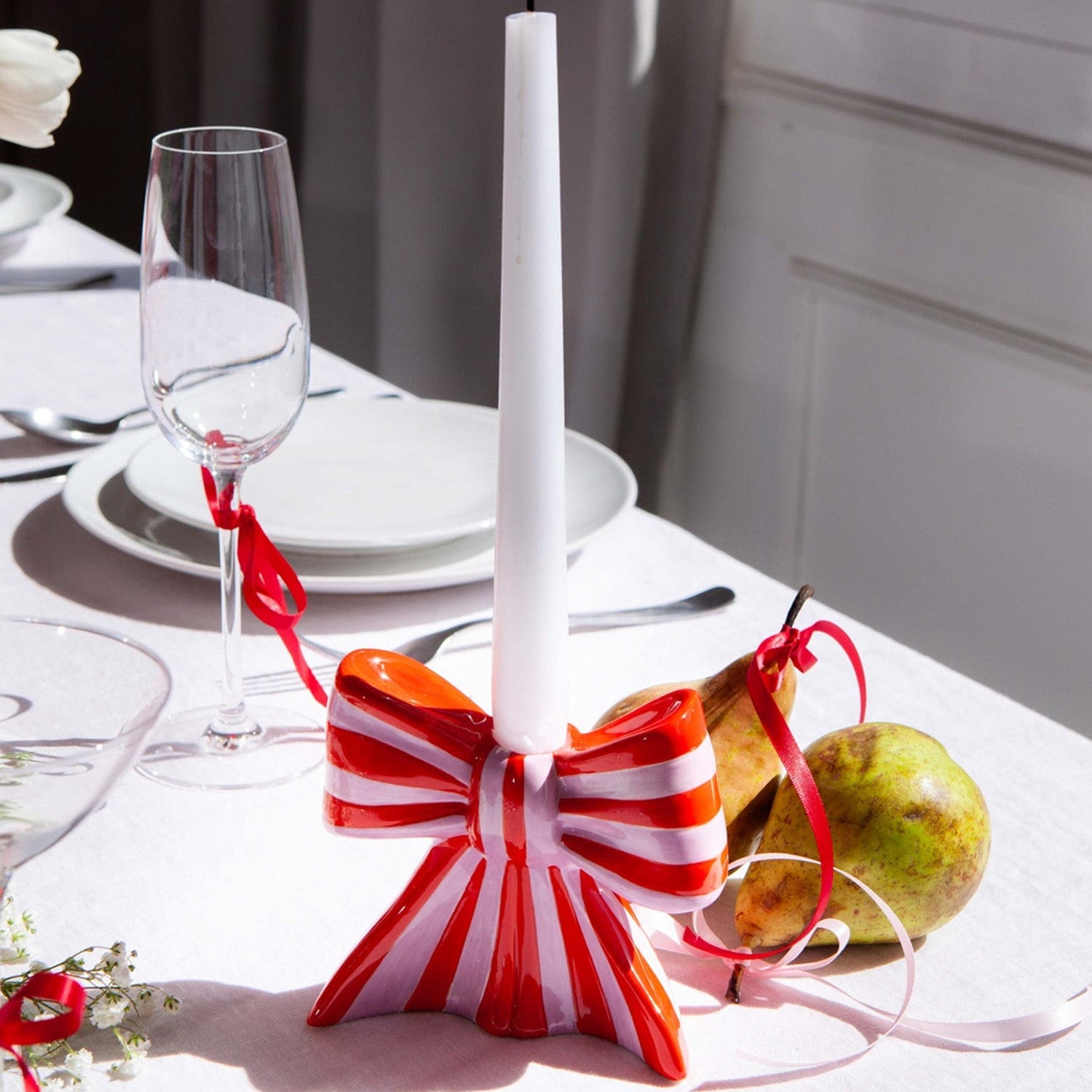 Ceramic candle holder shaped as a bow, taking inspiration from the ethereal ballet world and the whimsical allure of coquetry.