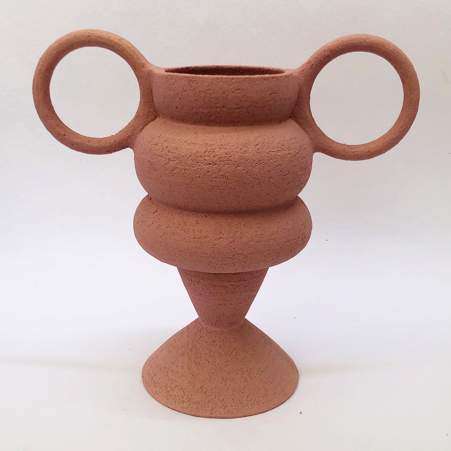 Two-part pot in Rose ~ can be used as a plant pot or as a decorative object. measures approximately 33 cm in height and 20 cm wide. the top and base can be interchanged with other medium-sized pieces within the Masot collection