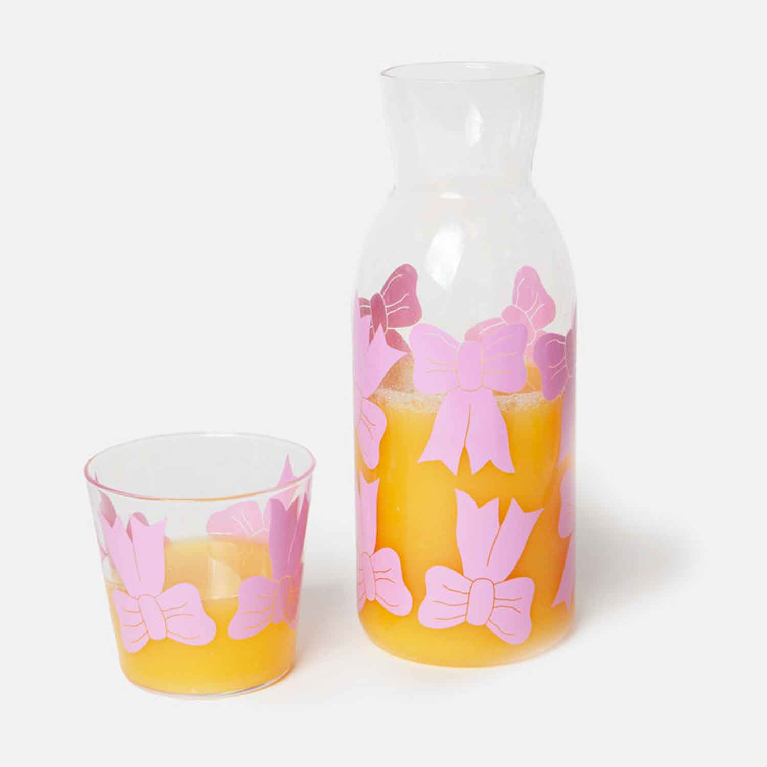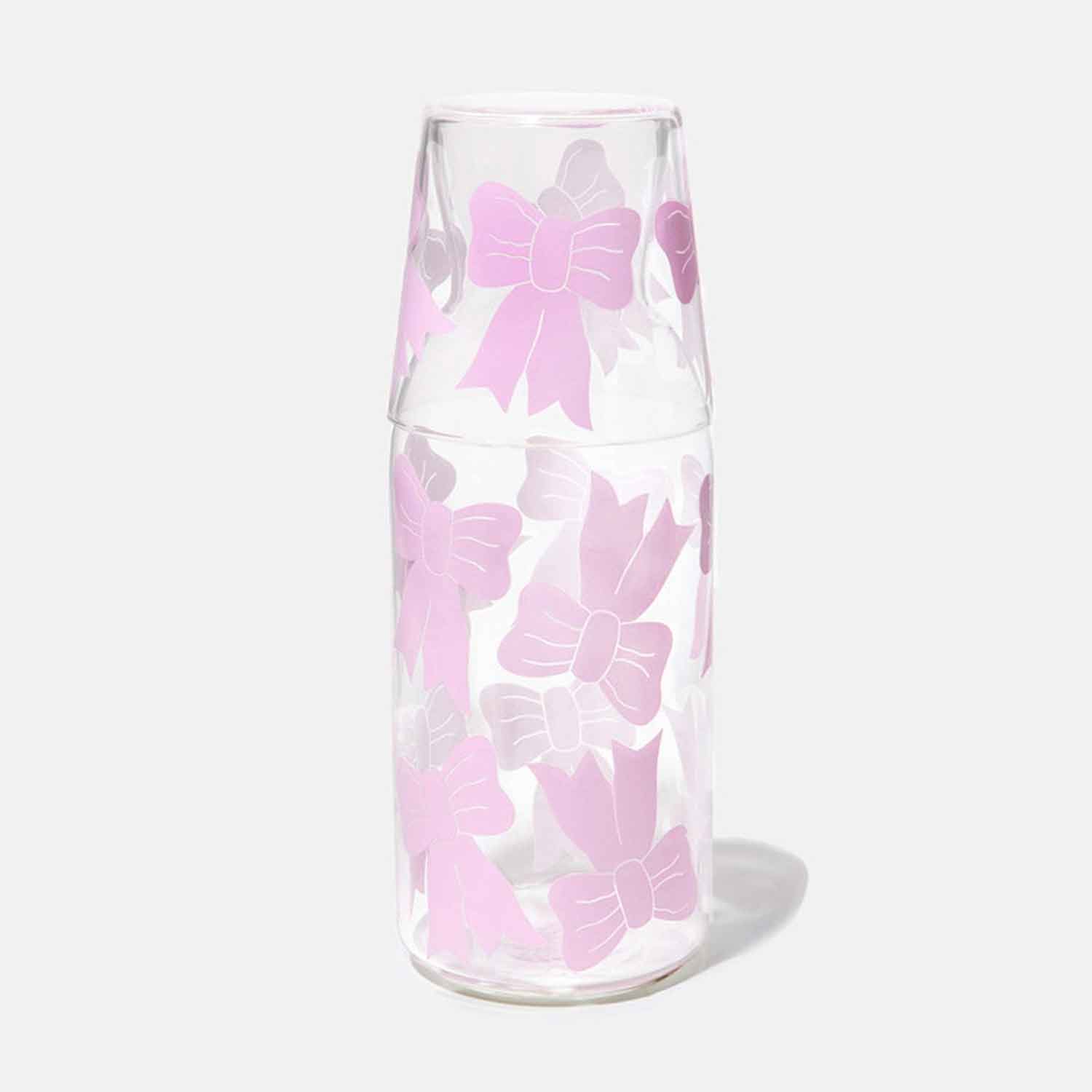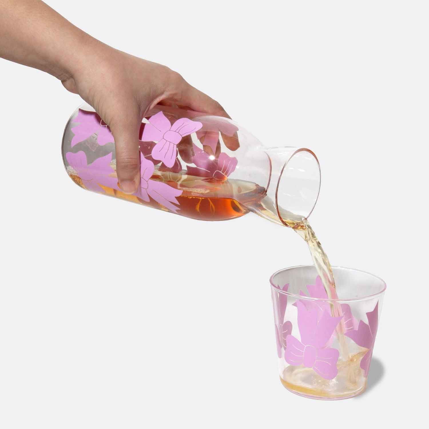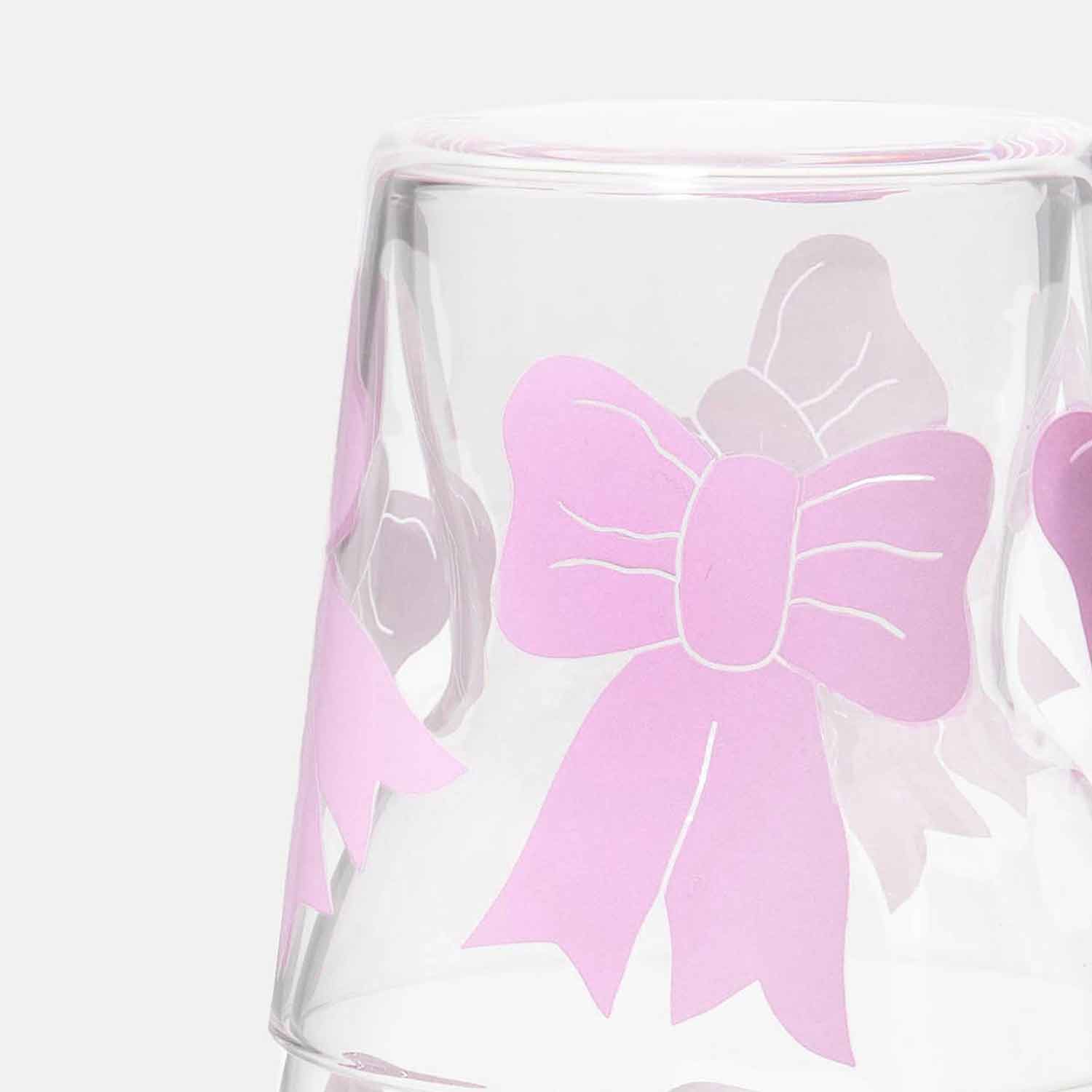 Jar and glass set with bow illustrations, taking inspiration from the ethereal ballet world and the whimsical allure of coquetry.