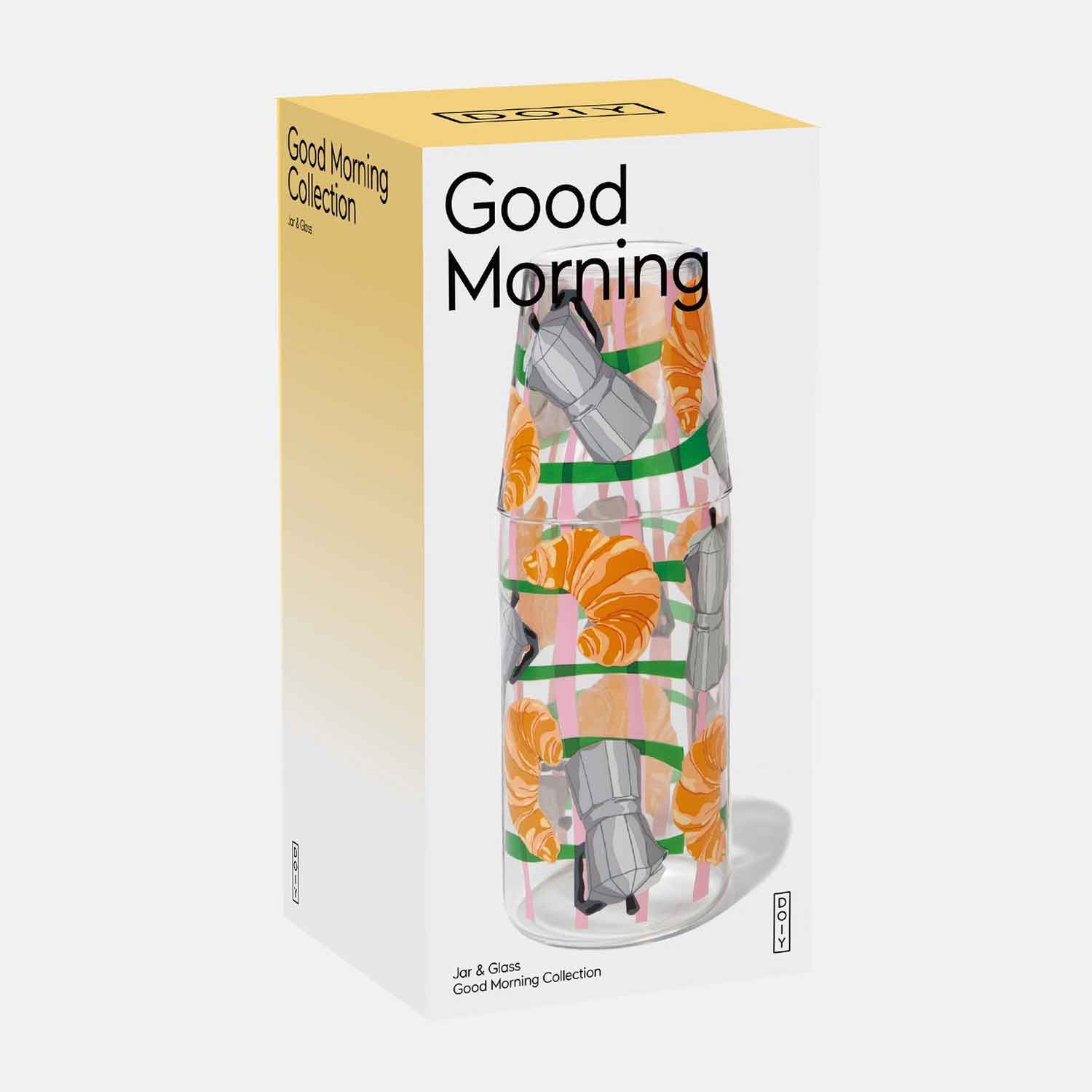 Elevate your mornings with the Good Morning Jar & Glass. A stylish set inspired by breakfast classics, perfect for storing and serving.