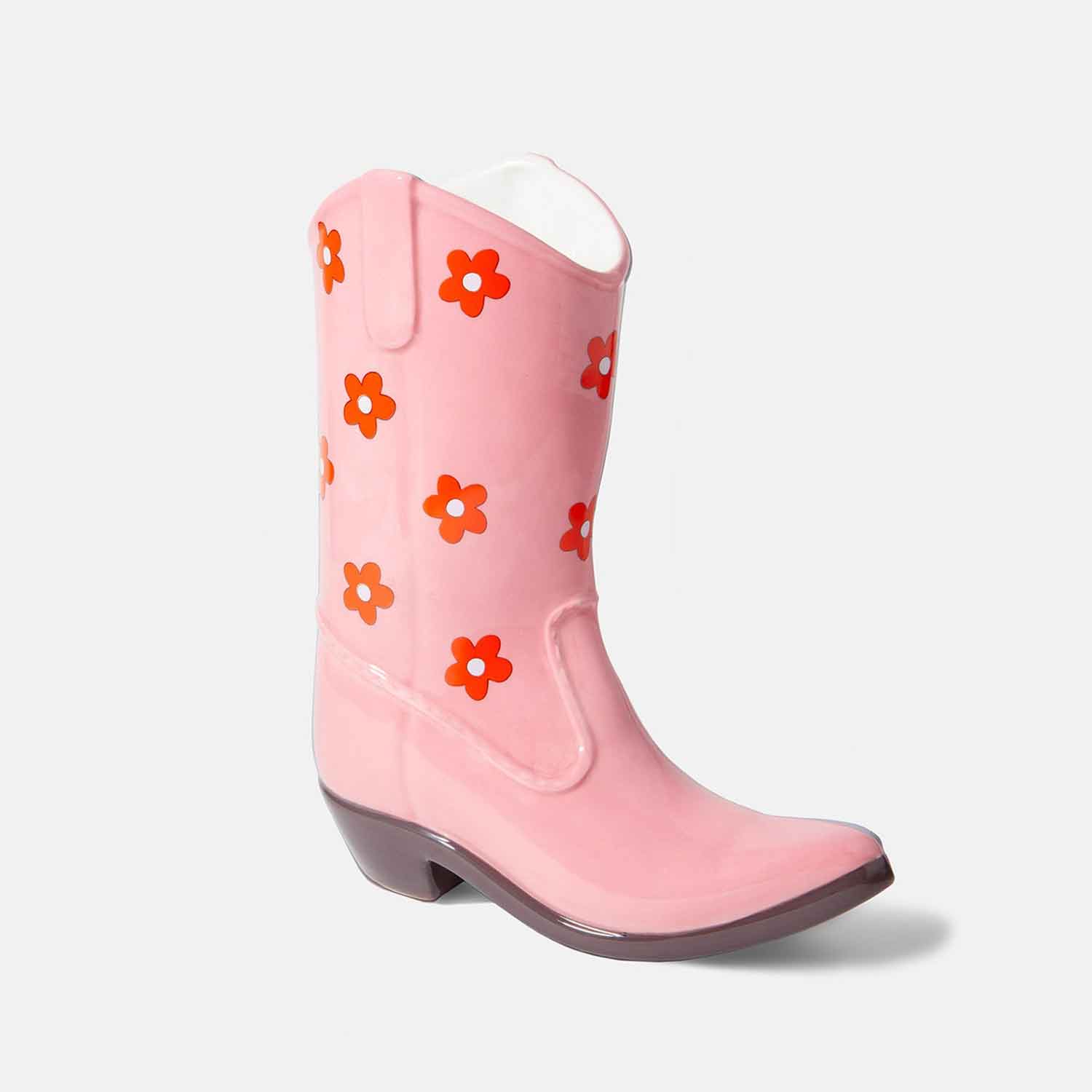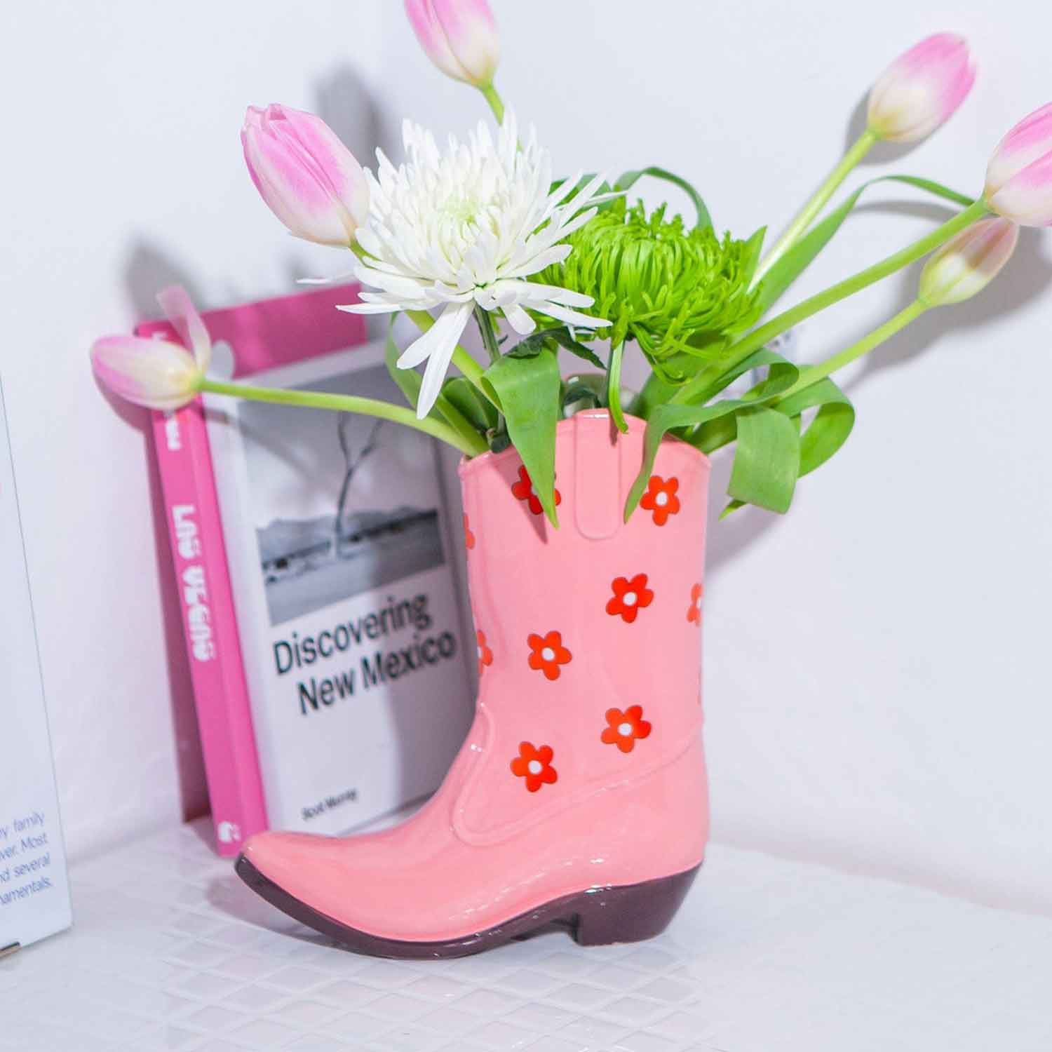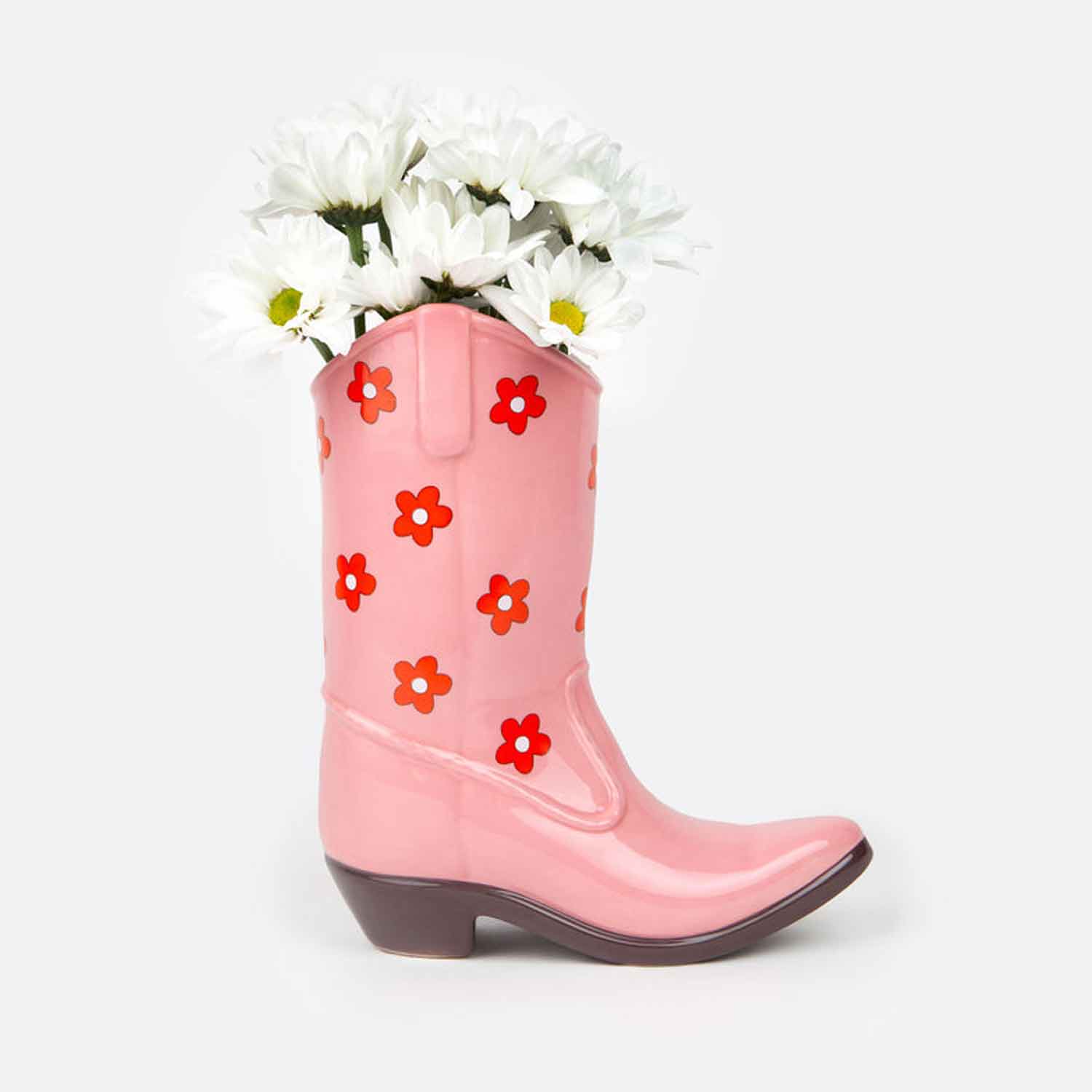Yee-Haw! This cowboy boot-shaped vase brings a dash of Western chic to any space with its spirited and whimsical design.