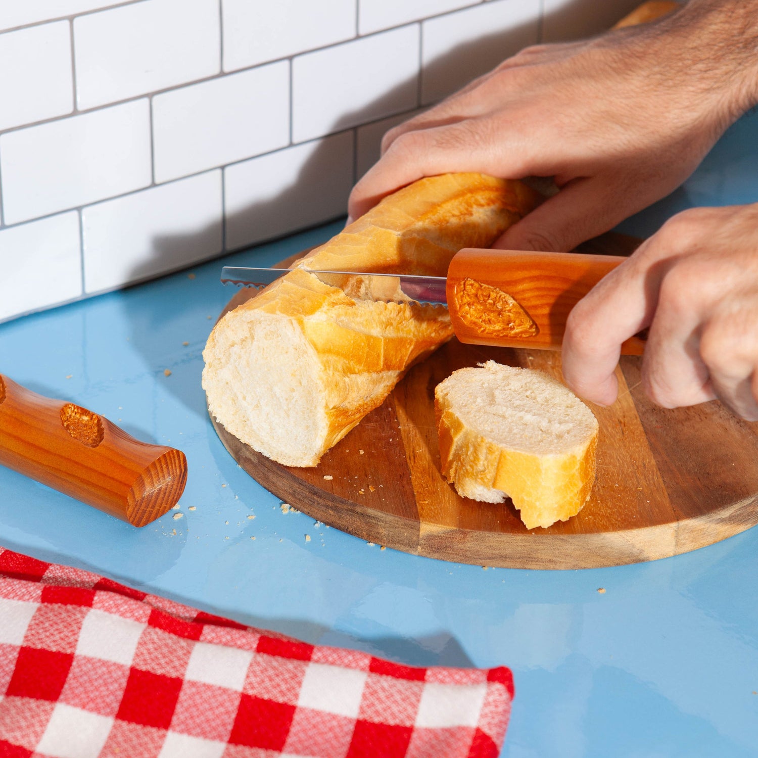 Slice with style using the Good Morning Bread Knife in Baguette. Perfectly blending practicality with a playful design inspired by French bakeries.