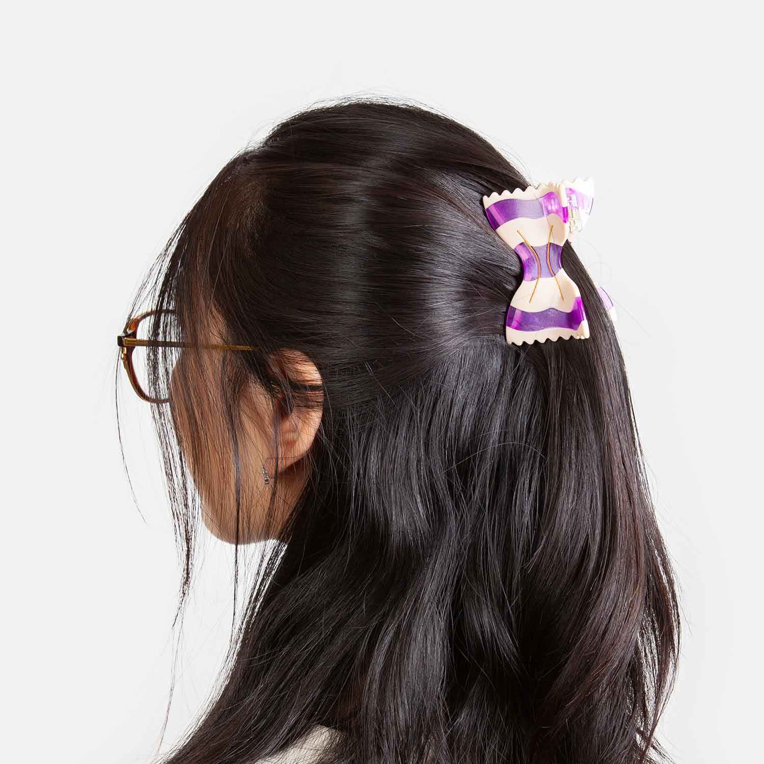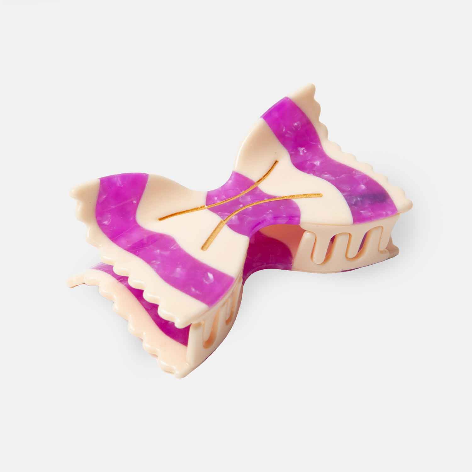 Add a delicious twist to your hairstyle with the Farfalle Hair Claw in purple. Playful and practical, it’s a pasta-lover’s dream accessory!