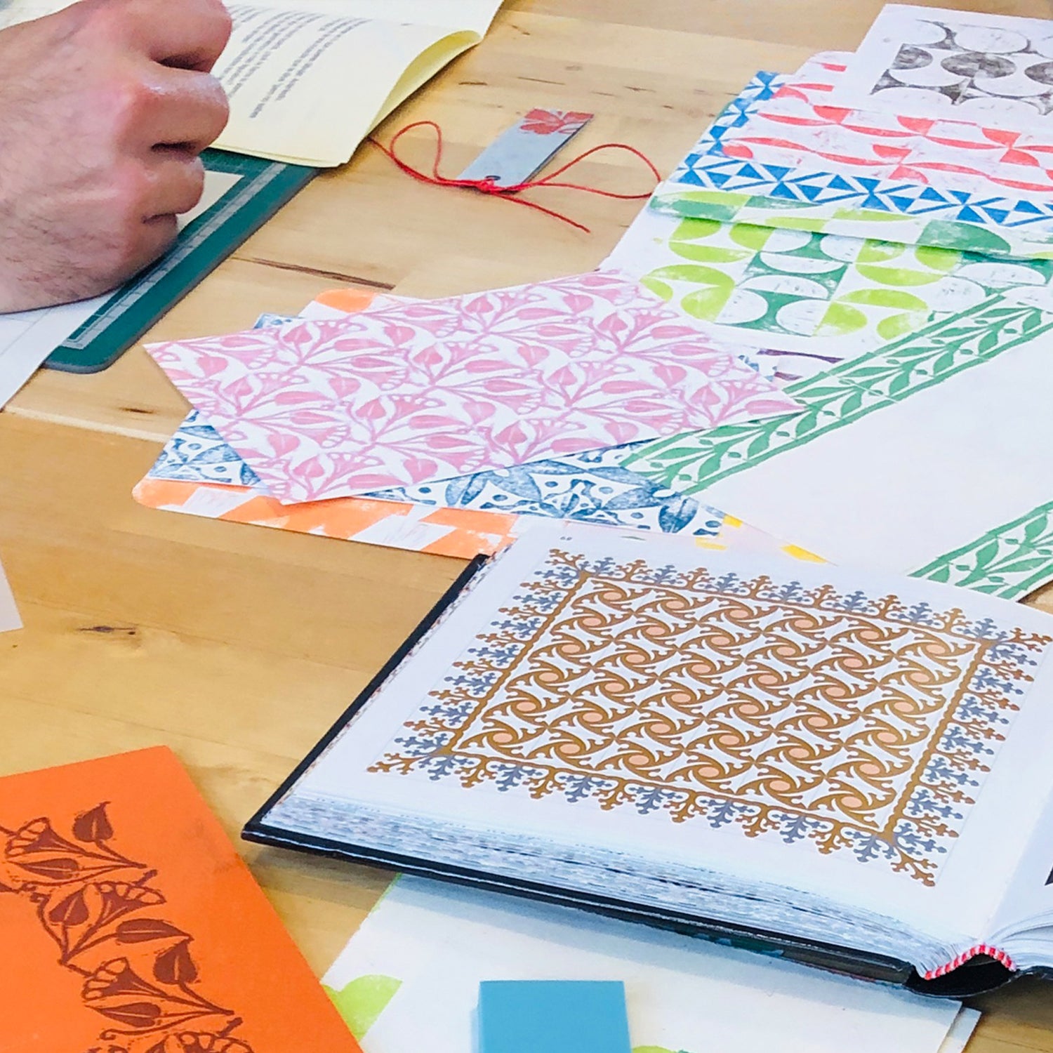 Farem els nostres propis segells de linoleum per crear patterns. Parlarem sobre el tesselat, les geometries dels patrons, veurem differents exmples i inspiració tan de la natura com de l’art i l’arquitectura.